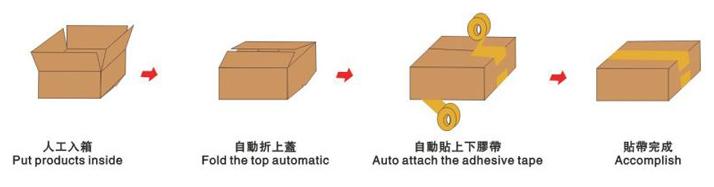 1.本套单机型全自动化折上盒封箱机系列,适用于无人化流水线联机包装作业