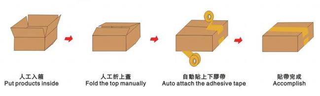 1.本系列是以单机机型,上下“一”字型贴膜带多规格化全自动封箱机包装作业