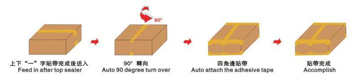 1.本套系列是以单机组合配套,单机型四角边封箱系列,可配合其他“一”字型贴带机型联机配套,组合成(工字型自动封箱)作业