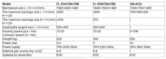 - FL5545TBA + SM4525 automatic "L-type sealing, shrink packaging machine