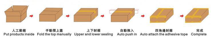 1.本套系列是以单机组合配套,单机型四角边封系列,联机配套,完成(工字型自动封箱)作业。传动设计方式采用上下传动送箱贴带封箱包装作业